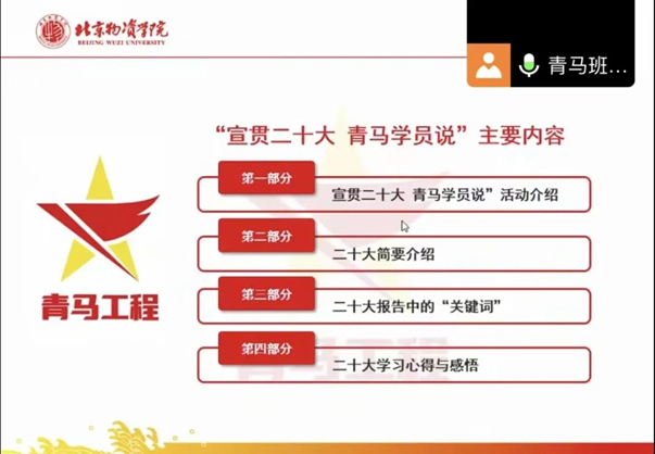 二十大胜利闭幕,学习二十大是当前和今后一段时期内重要的政治任务,为提高家庭经济困难员工的政治认同感,提高其政治知识储备,以二十大精神示范引领带动家庭经济困难员工们深入学习、认真领会、准确把握党的二十大精神,11月14日,邀请青马班学员徐梦宇为全体家庭经济困难员工宣贯二十大精神,徐梦宇结合自身的专业背景和成长经历,选择适合的侧重点,以青年化阐释的视角开展宣讲,主题突出、理解精准、生动形象。从心得体会、理论创新、党的成就、自身成长与党和国家发展相结合、共青团员的作为这五个方向进行宣讲。