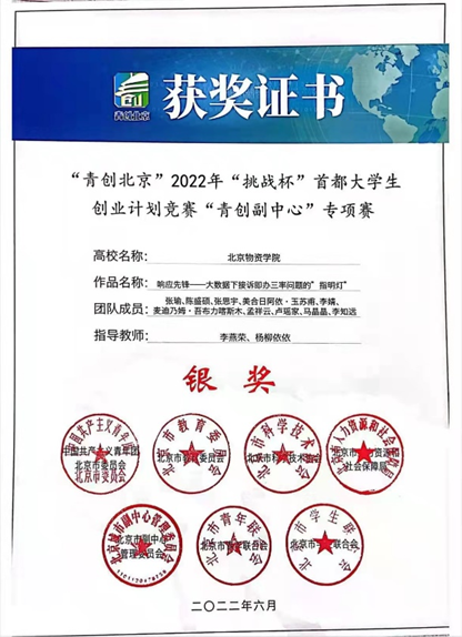 美合日阿依·玉苏甫、马晶晶团队,在专业课教师李燕荣的指导下,在“接诉即办”作为北京市推动城市治理的创新实践的背景下,积极调研,提出全过程管理平台借助大数据、信息化等前沿技术对服务各环节进行优化的方案,实现管理高效、流程可视、处理前沿,为百姓而“接”,为民心而“办”,参赛题目获得北京市级银奖。
