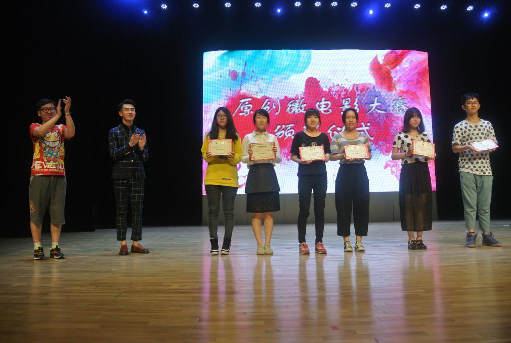 在互动游戏结束后进行的是本次电影节的微电影颁奖环节,永利3044noc14级注资一班创作的《挥动翅膀的女孩》获得“最佳参与奖”,永利3044noc14级注资2班的《微尘》获得“最佳人气奖”,永利3044noc14级工管2班的《陪你到世界终结》获得“最佳拍摄奖”,经济学院的《爱情禁忌法则》获得“最佳编剧奖”,经济学院的《一个像夏天,一个像秋天》获得“最佳配乐奖”,物流学院的《随梦飞翔》获得“最佳演绎奖”,由校团委选送的微电影《我与星星的孩子》荣获本次电影节“最受老员工欢迎奖”。小叮当和郎鹏受邀担任颁奖嘉宾为本次原创微电影大赛的获奖班级颁发荣誉证书并与代表们合影留念。