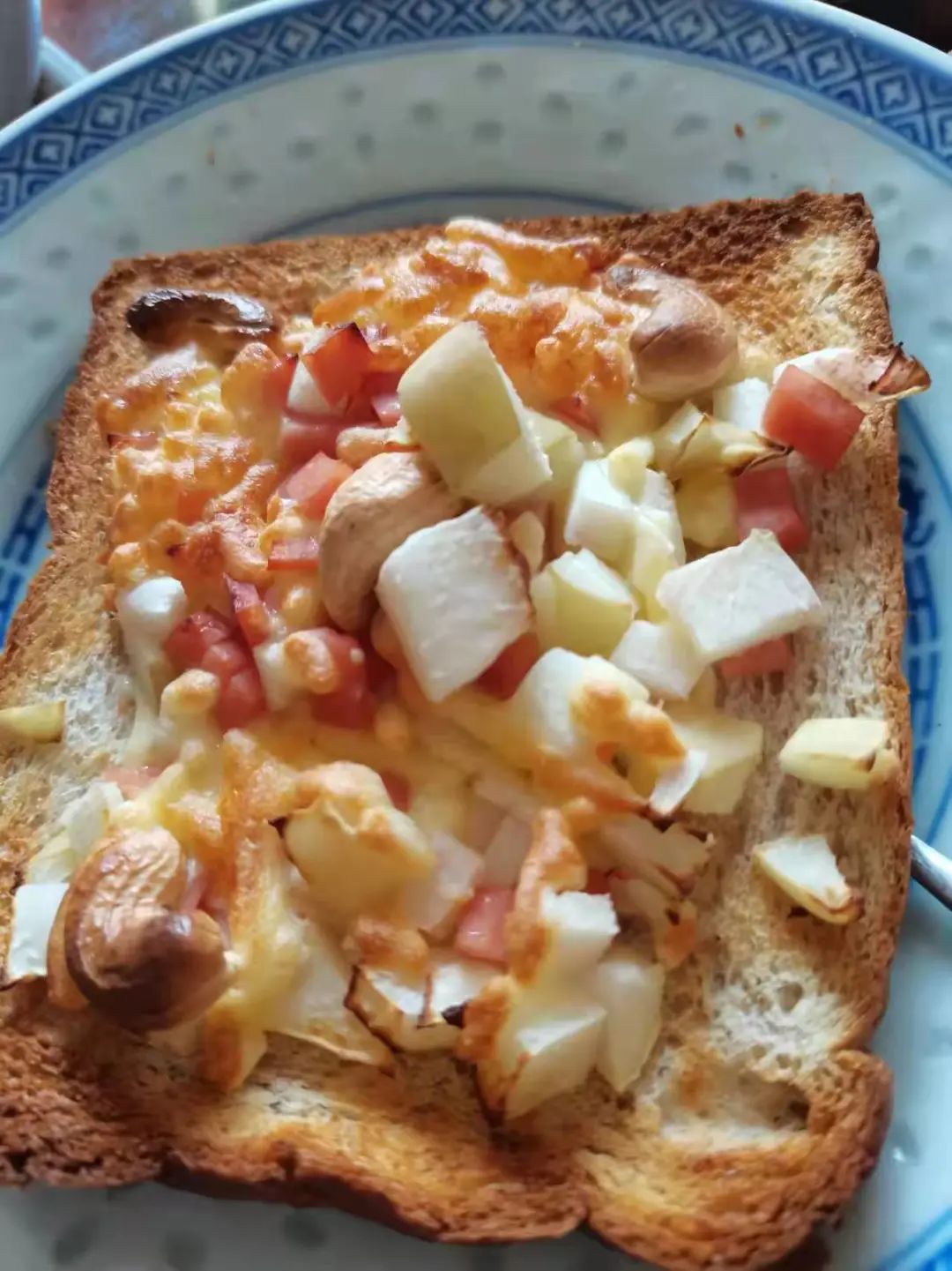 自家年夜饭的特殊品,这是我和弟弟妹妹最喜欢吃的,甜甜的味道和醇香的芝士的组合是一种很奇妙的味道。