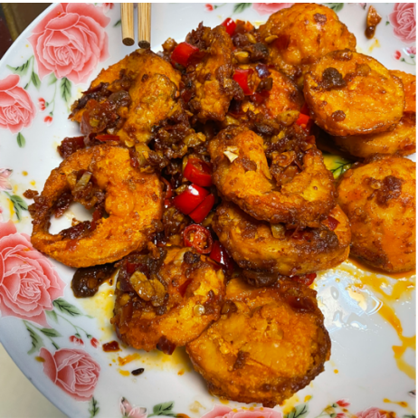 第三道菜:香辣红火黄花鱼,黄花鱼搭配香辣味,鲜香与麻辣的碰撞,别有一番风味,寓意年年有余,好爱这道菜。